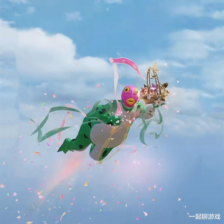 接下来我们一起来欣赏下飞行器,这次的飞行器在设计方面也是让人拍案叫绝了,红飘带、绿飘带、花篮,红头鱼绿青蛙的模样,着实是让人忍俊不禁,估计光子的美工都没有想到玩家会这么“搭配”吧?嘿~